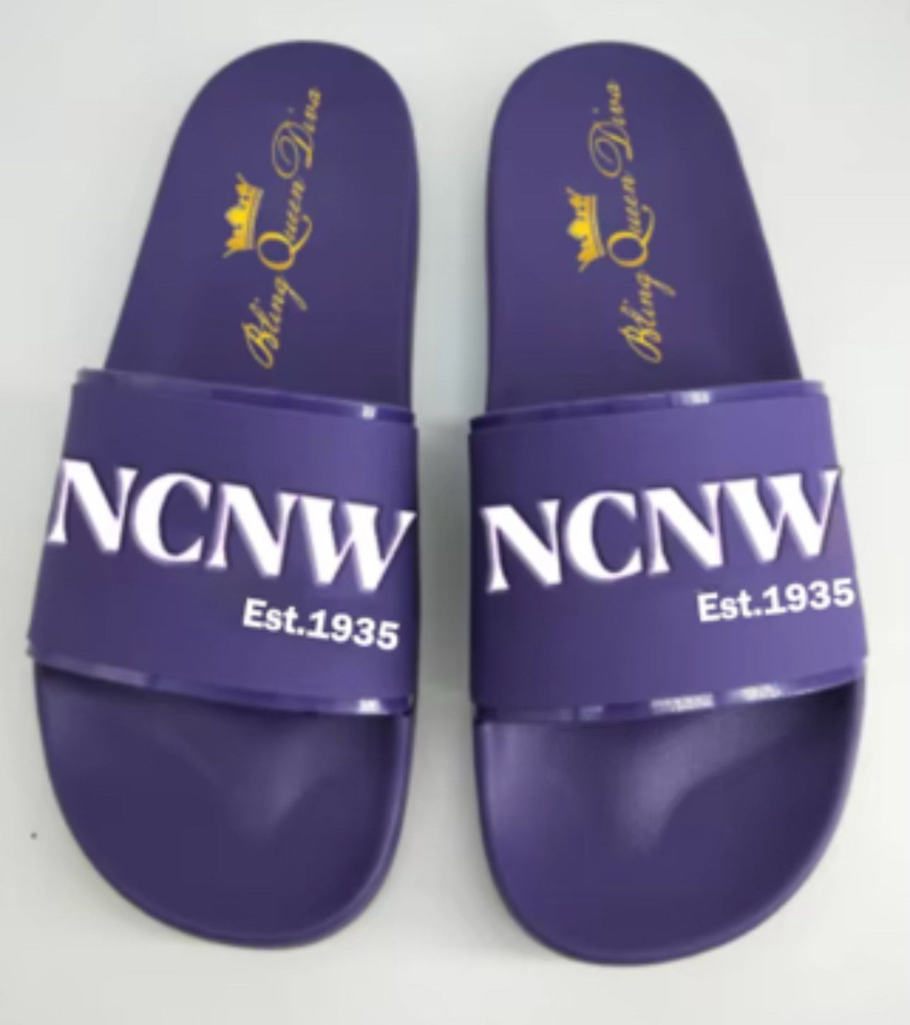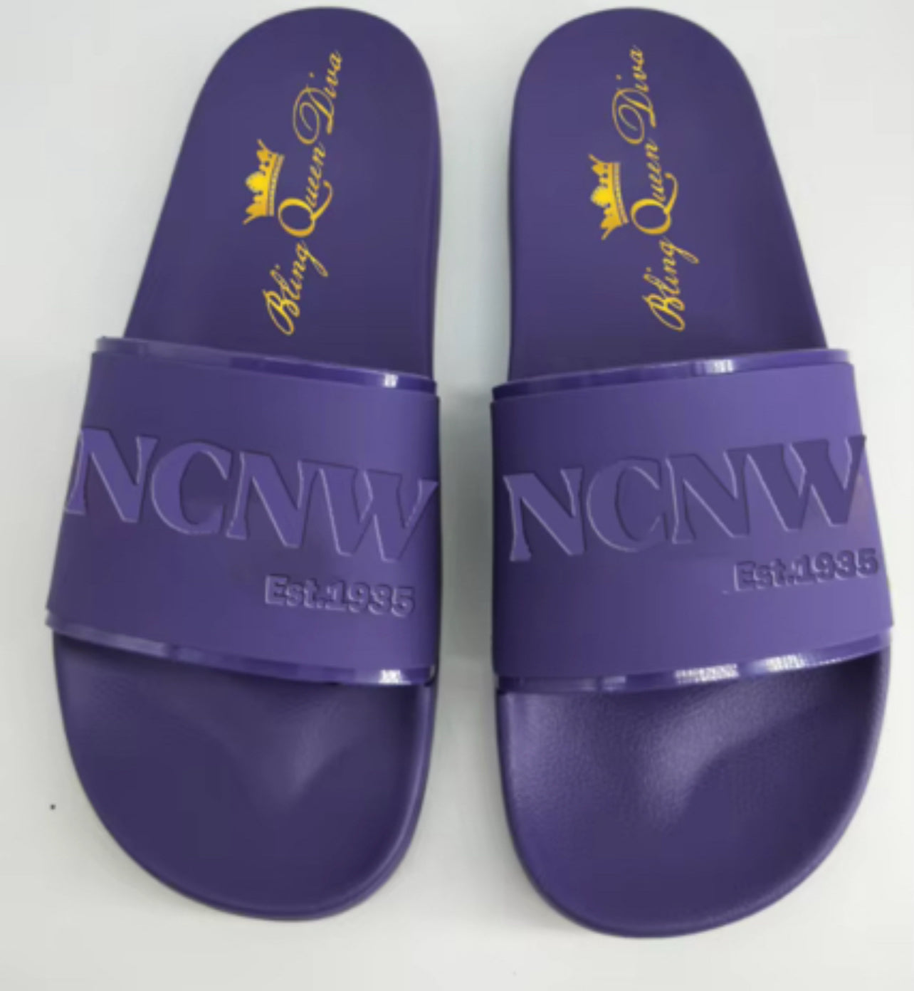 PRE-ORDER SALE! Embossed sleek purple slides and NCNW raised logo slides. Expected arrival date 12 December 2025!